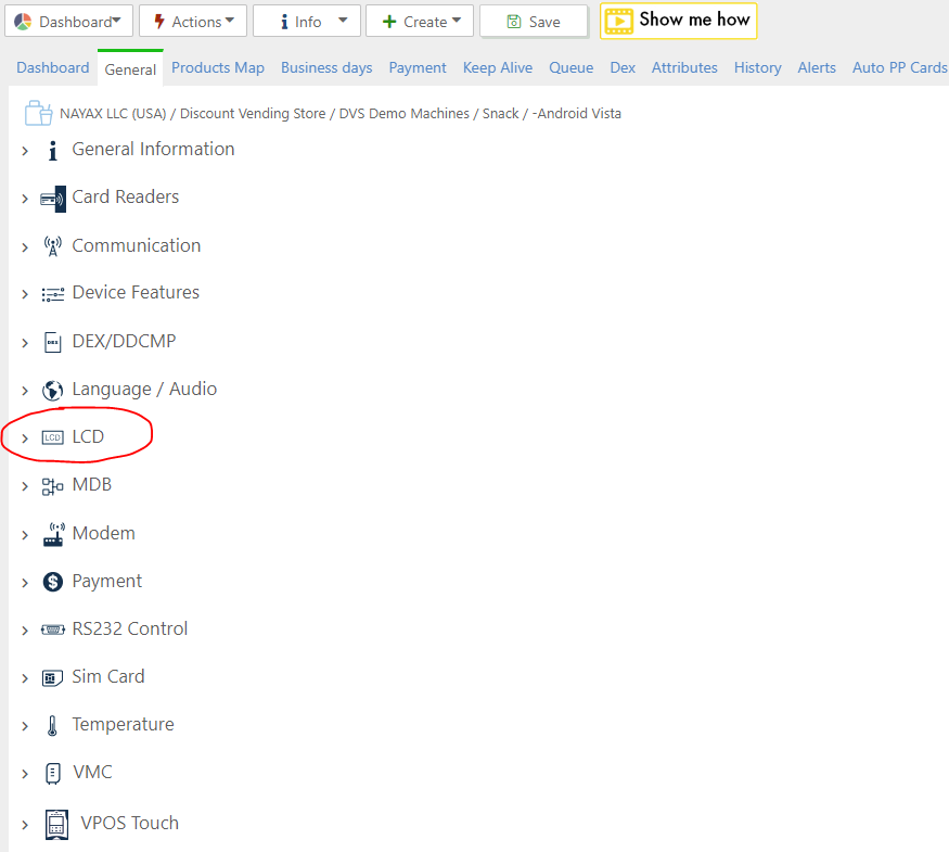 Step 8: Scroll down to the “LCD”. Edit the “Cash Only Message”